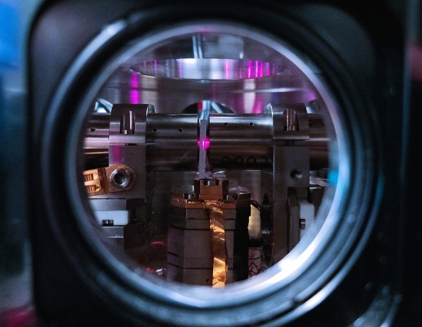 Interior of the cryostat chamber in which the scattering measurements detailed in this thesis are performed, photographed from one of the the chamber windows.