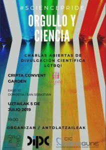 The Donostia International Physics Center (DIPC) and the Centro de Física de Materiales (CFM), a joint centre of the University of the Basque Country (UPV/EHU) and the Consejo Superior de Investigaciones Científicas (CSIC), organise the first day of Pride in Science in Donostia-San Sebastián with two scientific dissemination talks in LGTBQI key and a table/forum for debate open to all audiences.