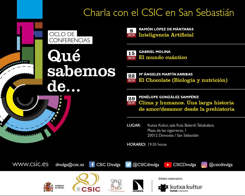 El descubrimiento reciente de que el cacao, principal componente del chocolate, es un alimento rico en compuestos naturales como los polifenoles, con reconocidas propiedades antioxidantes y anti-inflamatorias, ha estimulado en los últimos años la investigación de sus efectos sobre la salud. Investigaciones que no han hecho sino confirmar muchas de las virtudes saludables que ya le atribuían sus primeros consumidores hace dos mil años. Sin embargo, cacao y chocolate no son lo mismo. ¿Conoces la historia de la transformación del cacao en chocolate? Durante la charla se hará un breve repaso de ella y se mostrarán cuáles de sus componentes pueden tener un efecto beneficioso para el organismo. Se presentarán, además, las principales evidencias científicas que relacionan al cacao y al chocolate con la salud y se darán las claves para hacer del chocolate un alimento saludable.