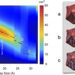 In the figure bellow (a) the photography of the curved TiO2(110) sample (c-TiO2(110)), which allowed the systematic study of stepped r-TiO2(110) surfaces with tunable density of [1-10]-oriented steps is shown. Using Scanning Tunneling Microscopy we analyzed the structure and distribution of steps and vacancies as a function of the average deviation (miscut α) from the (110) surface. A smooth evolution from wide terraces, containing oxygen bridge vacancies is observed [Obr vac´s, Figure (b)], toward narrow (110) terraces, depleted of Obr vac´s, but exhibiting a high density of triangularly-shaped protrusions at steps (St) [Figure (c)]. By scanning the photoemission beam in angle resolved photoemission spectroscopy across the sample, we studied the signature of the Ti3+ polaron, namely the so-called Ti3+ gap state [Figure (d)]. The gap state reflects a transition from Obr to step-edge-doping across the curved surface through a 110 meV shift in apparent binding energy, indicating a different polaronic relaxation for flat or stepped surfaces. Interestingly, the intensity of the gap state correlates with the sum of Obr vac´s at terraces and St step-protrusions, suggesting that every St site hides one oxygen vacancy that equally contributes to sample doping in r-TiO2(110).