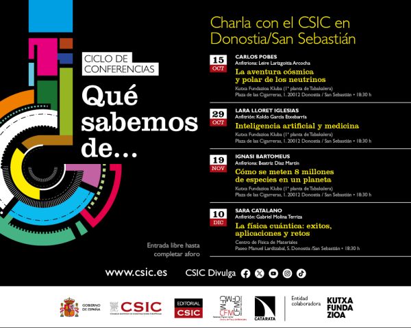 Zortzigarren urtez jarraian, CFMk, Kutxa Fundazioarekin lankidetzan, Qué sabemos de… zikloa aurkeztuko du Donostian. Ikerketa Zientifikoen Kontseilu Gorenak (CSIC) sustatutako dibulgazio-hitzaldi sorta bitxi hau gizakiaren berezko jakin-minean oinarrituta dago, eta zientziaren eta haren dibulgazioaren arloko profesionalak ditu.