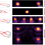 Figure: Photostability of nanohybrids irradiated with varying power density and size distribution histograms of two hybrid samples (TEM images in inset) before and after irradiation.